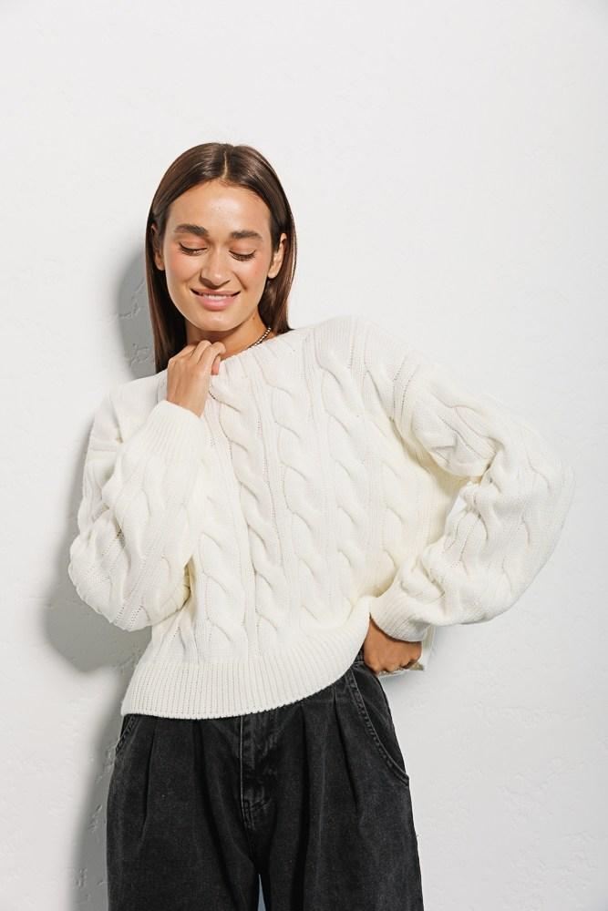Светр жіночий в'язаний оверсайз з візерунком молочний Modna KAZKA MKAR102144-1